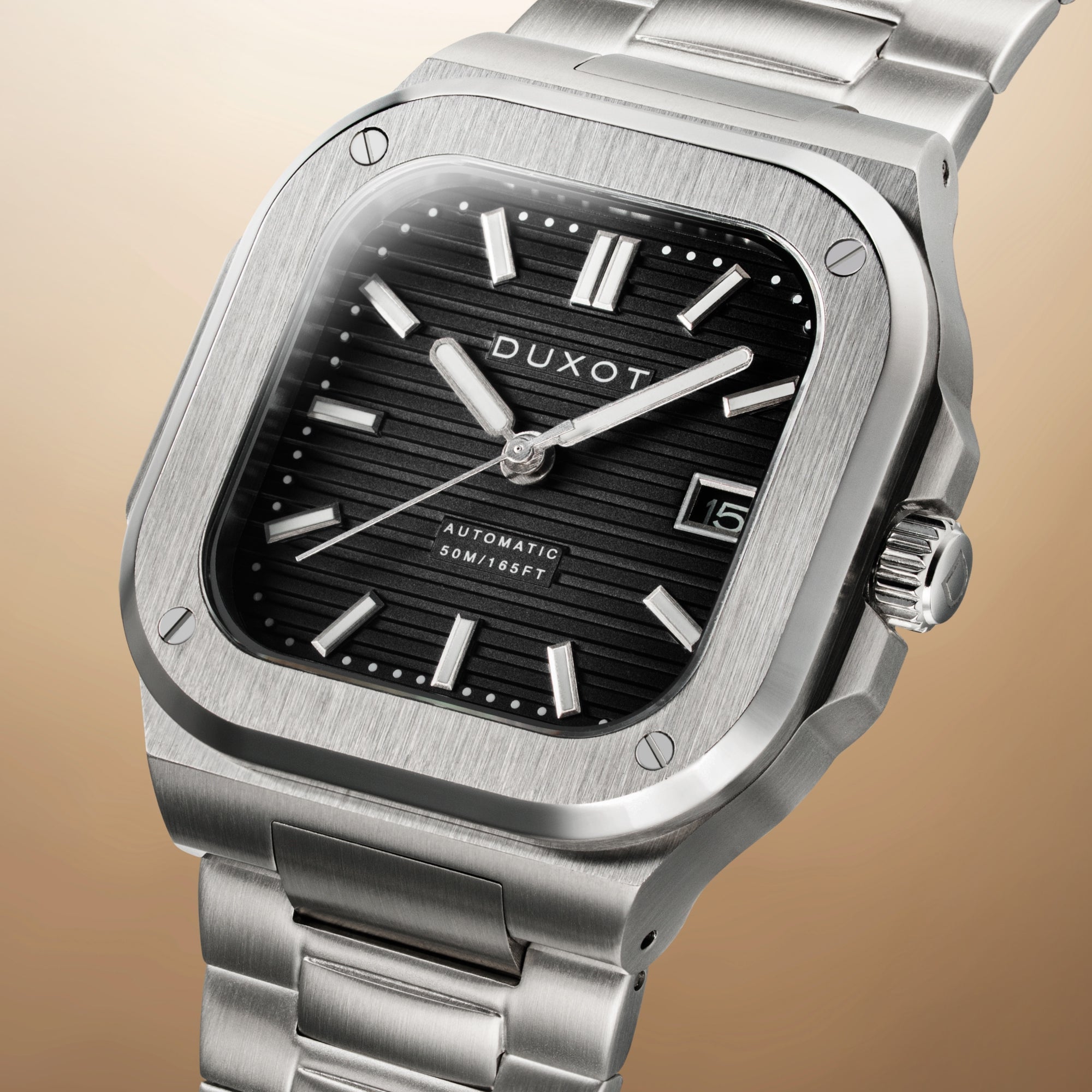 Step away from the expected with a 42mm square case, crafted in stainless steel with a clean fixed bezel and sapphire lens. The angular silhouette offers a fresh, contemporary look thatβs as striking as it is timeless.