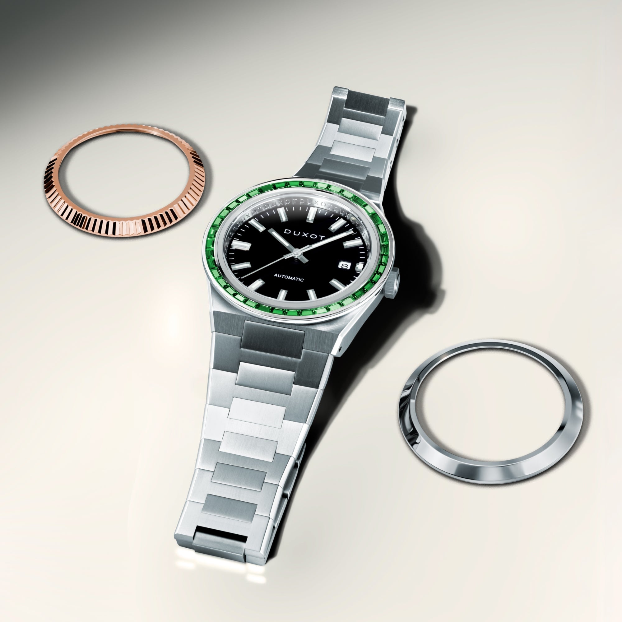 A refined expression of modern elegance where clarity, craftsmanship, and colour meet purposeful design. The Alicante is elevated by an interchangeable bezel system that adapts effortlessly to every moment.