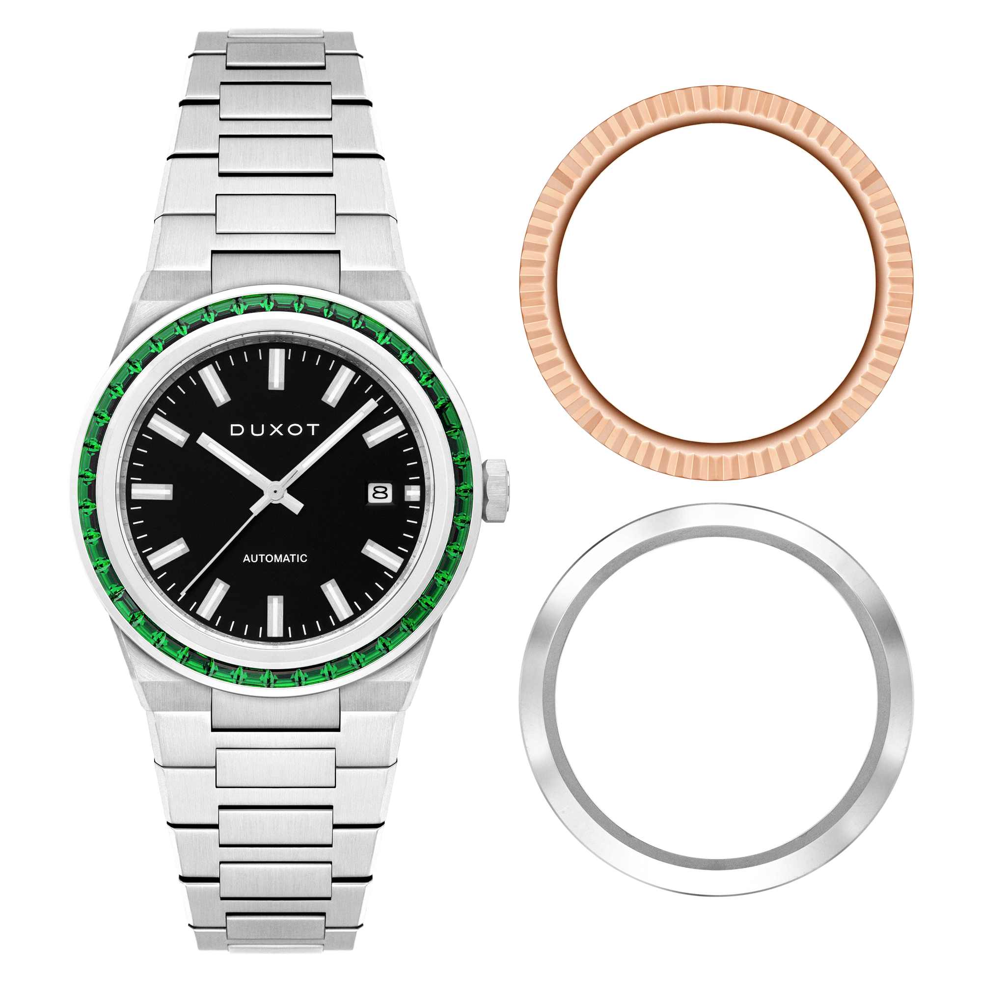 Powered by a dependable Japanese automatic movement, each piece features a durable sapphire lens and a see-through caseback that reveals the mechanics beneath. The Alicante continues Duxot’s pursuit of everyday classics.