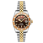 Encircled by a gemstone bezel, the Atlantica glows with refined brilliance. Its 40mm stainless steel case houses a Japanese automatic movement, visible through a custom see-through exhibition caseback — a tribute to mechanical artistry.